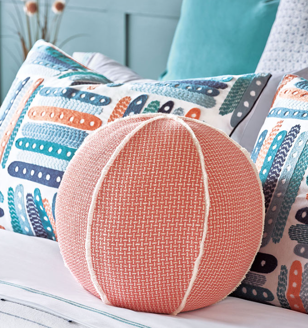 Add a bright touch to your space with the Phineas Spherical Pillow. Its coral crosshatched fabric and mini brush fringe create a unique, textured look. Choose from three premium inserts for your perfect comfort, and enjoy easy cleaning with the hidden zipper.