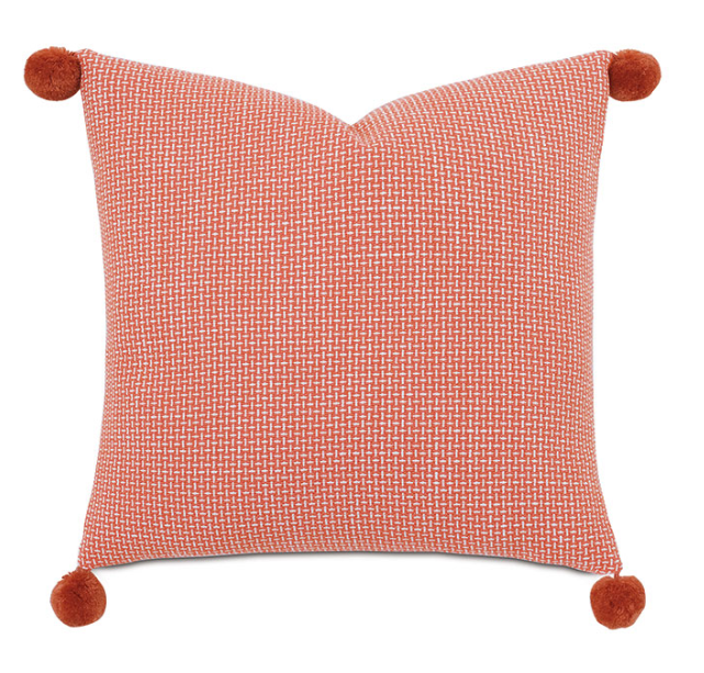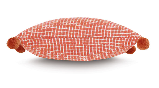 Add a bright touch to your room with this coral crosshatch pillow. It features a smooth Bula Guava back and playful pom-poms on each corner. Choose from three premium inserts for your perfect comfort, and enjoy easy cleaning with the hidden zipper.