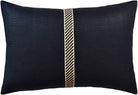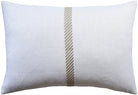 The Cabana Tape Bolster Pillow features a sophisticated hued linen front & velvet back with a single band of vertical tape running down the center of the front in a contrasting tan stripe and a solid back