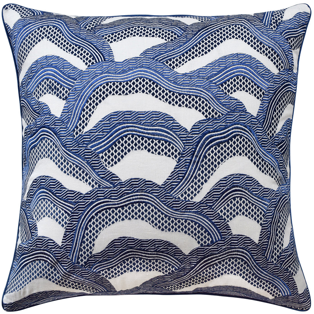 The Lez Riziere in Navy Blue has a distinct fluid quality reminiscent of waves or clouds and has matching blue piping