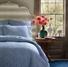 Ever since John Robshaw first became obsessed with block printing, he has been drawn to simple stripes. The lines of the Nando Shams & Euros fade and move in a way that's similar to hand drawing. He highlights this linework in these simple, elegant quilts, paying homage to old school India. Block printed on pure cotton voile, a soft lightweight fabric with a smooth surface. Hand quilted. Shams have envelope closure, Euro has a hidden zipper. Please note there is always some color variation with block printing.