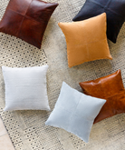 Embodying time-honored designs that have been classics for generations, the Sheffield Leather Pillows redefines vintage charm. 4-square stitched leather face with matching tone micro-suede back with zipper closure. Available in 4 colors and includes feather & down insert.