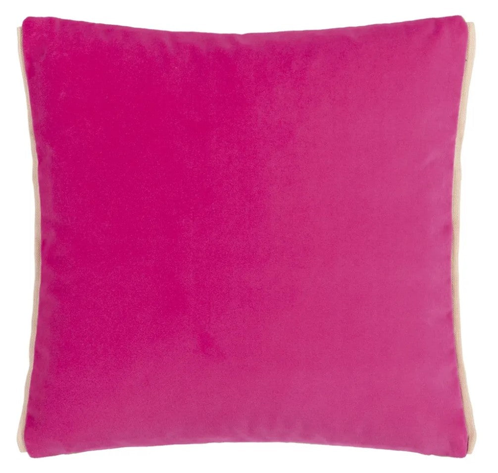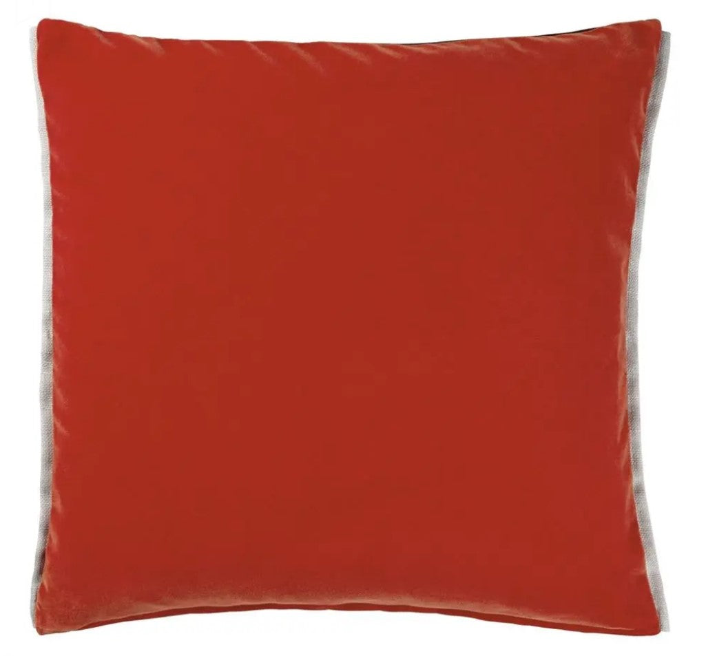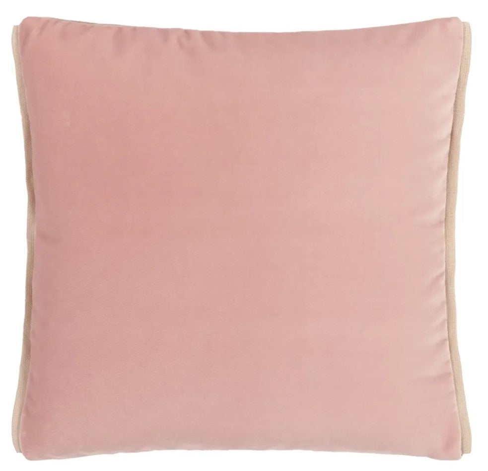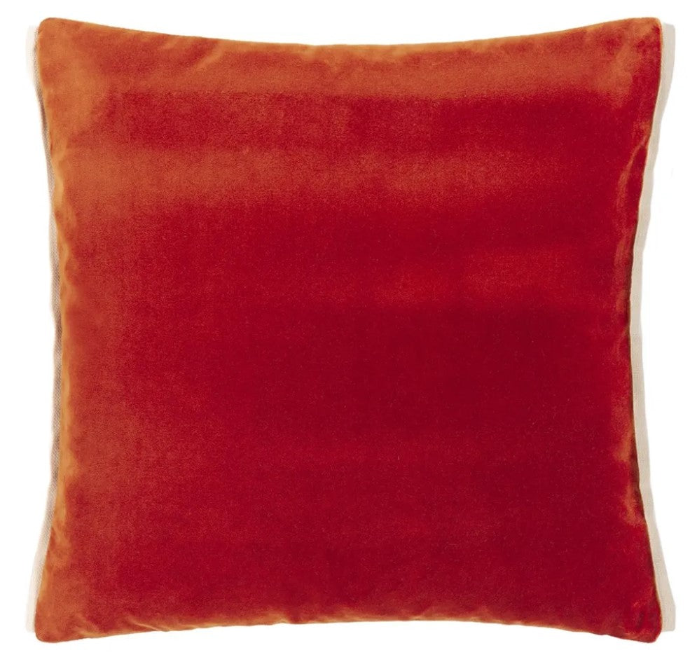 Cotton velvet is the feature of this luxurious 17inch square Varese Velvet pillow. Each pillow is available in multiple brilliant colors while others have a reverse to a contrasting color. All finished with a linen trim in natural. This elegant decorative pillow completes any interior scheme perfectly and is available in a huge selection of options.