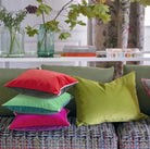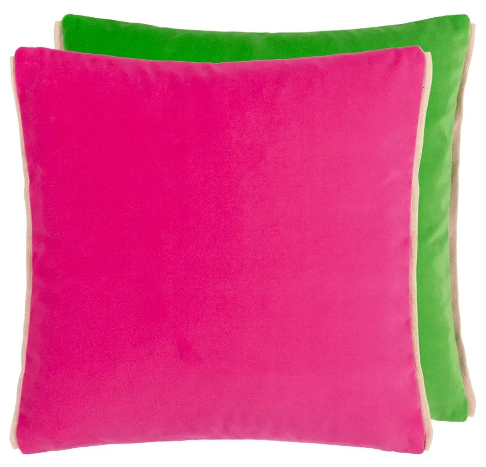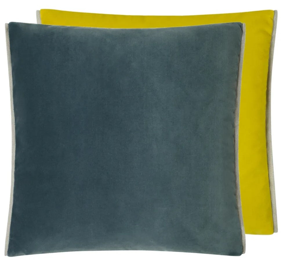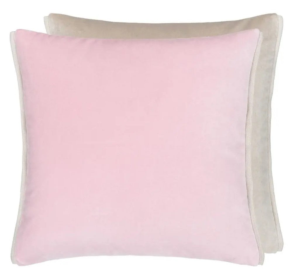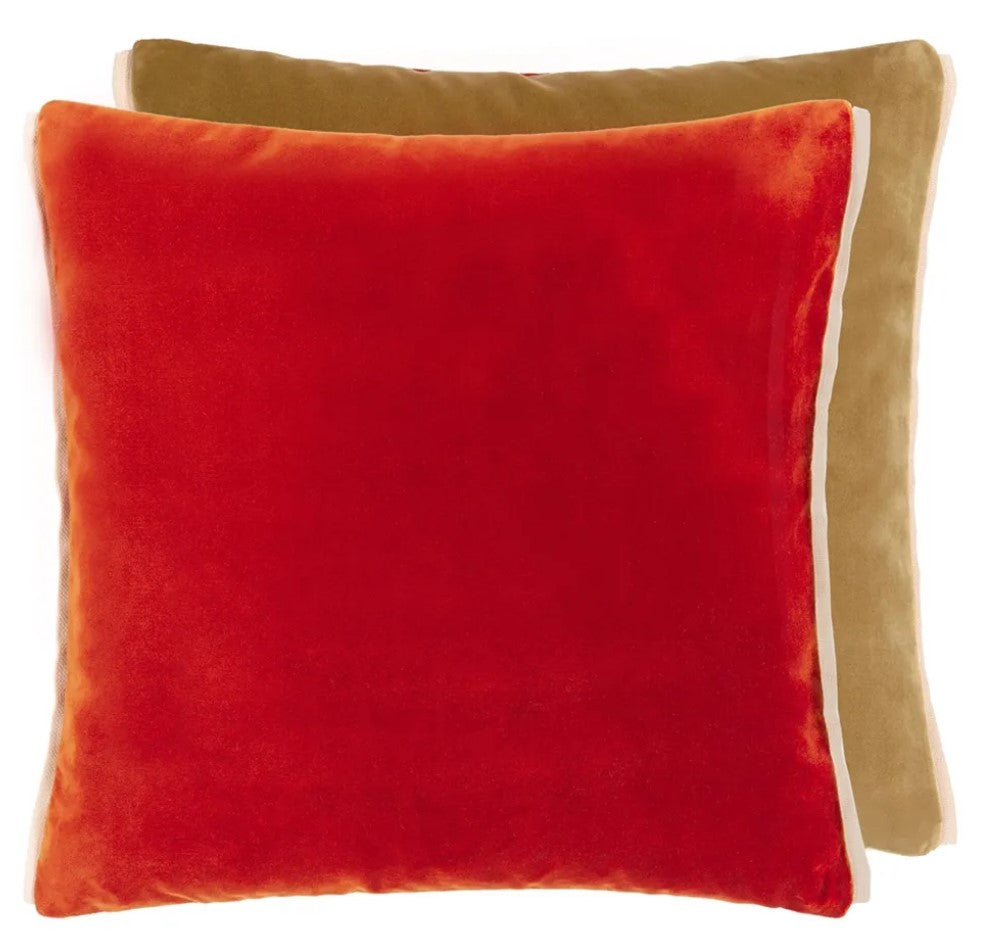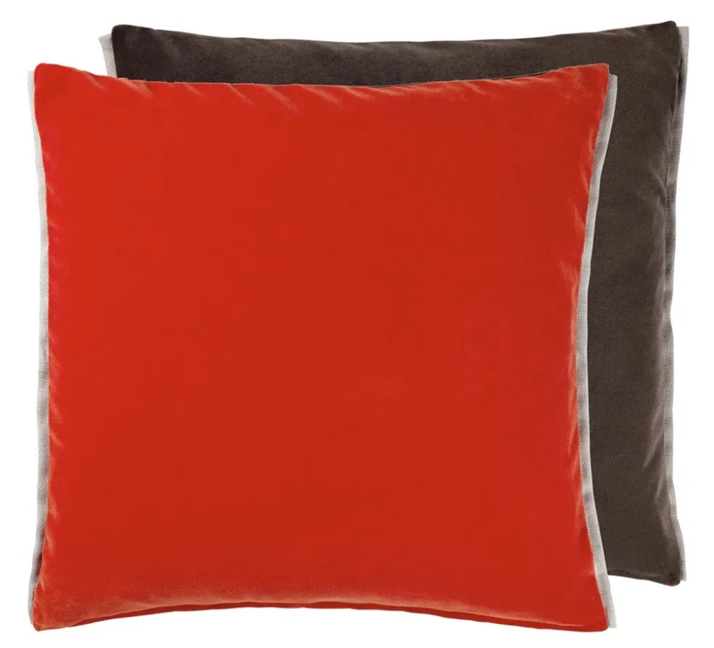 Cotton velvet is the feature of this luxurious 17inch square Varese Velvet pillow. Each pillow is available in multiple brilliant colors while others have a reverse to a contrasting color. All finished with a linen trim in natural. This elegant decorative pillow completes any interior scheme perfectly and is available in a huge selection of options.