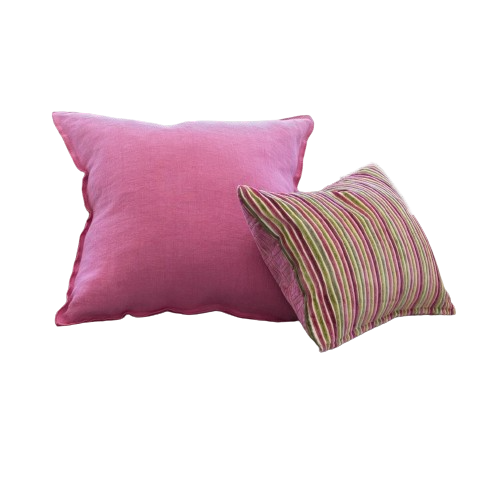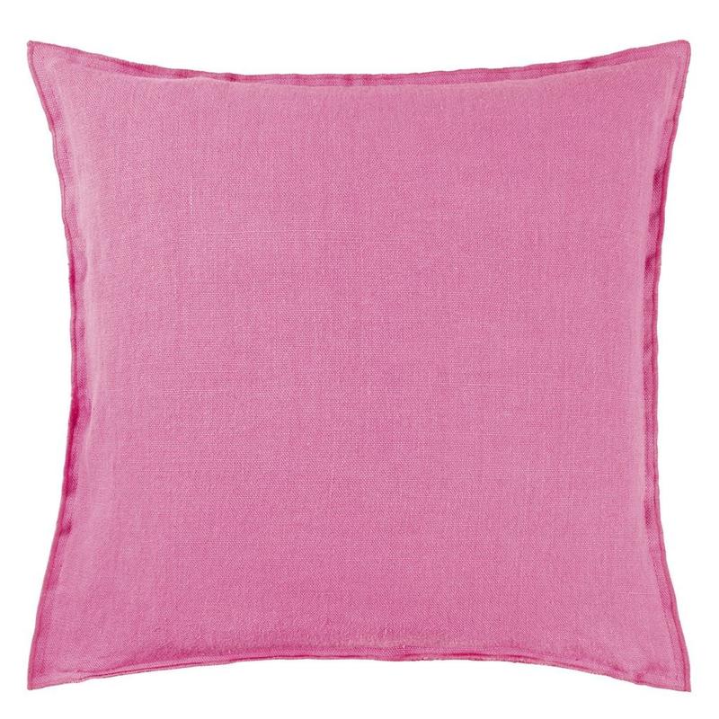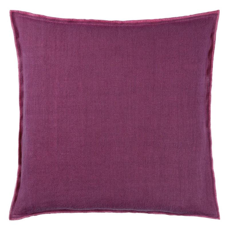 Brera Toss Pillow in is a two-tone pure linen features in this contemporary square decorative pillow in peony pink, reversing to deep fuchsia with a unique double flange seam. Finished with an overlocked stitch borders, this modern casual pillow is the perfect complement for any scheme.