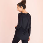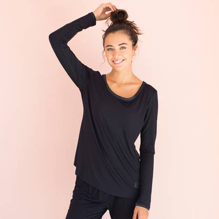 Delicate satin trim on the neckline and sleeves balanced with the loose flow of this classic long sleeve t-shirt will make it a cozy favorite any time of year. This unbelievably comfortable top can be matched up with any of the items in our Dreamwear collection.