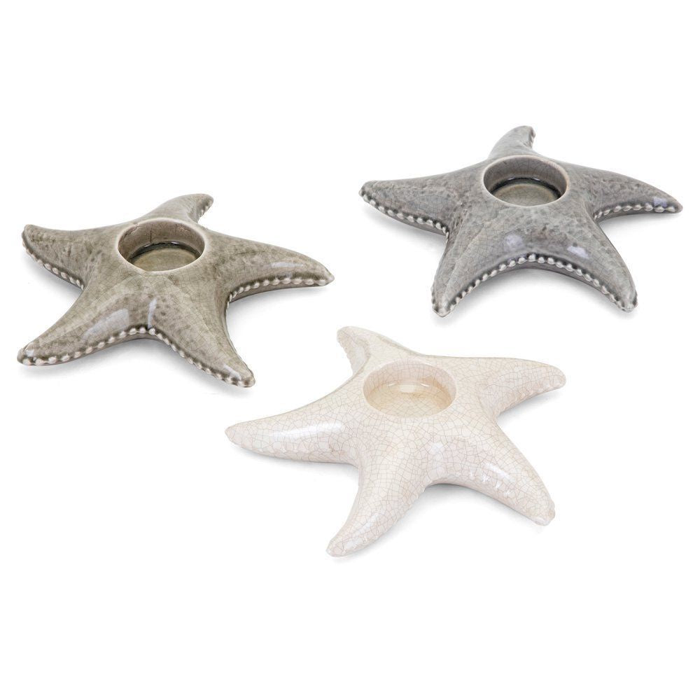 These Sandcastle Starfish Candleholders are sold separately in a choice of 3 earthy glazes. Each ceramic starfish nestles a single votive candle below the surface