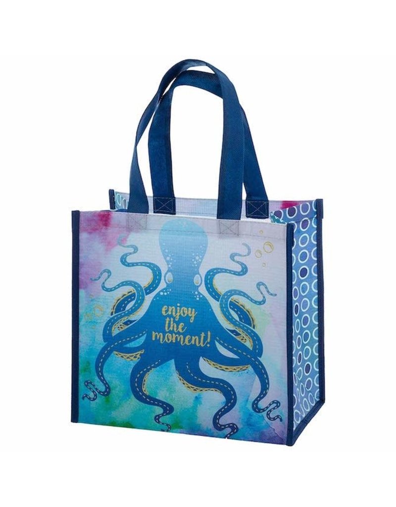Medium Octopus Gift Bag. You are a work of art and so is this collection of gifts bags. Help wrap your gift with these cheerful and reusable bags, made from recycled materials. Each durable bag shares an inspirational or fun message to remind you to bee happy and celebrate life. Encourage friends to be bright and eco-friendly by collecting the set making gift giving environmentally friendly.