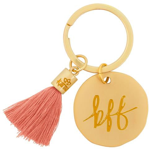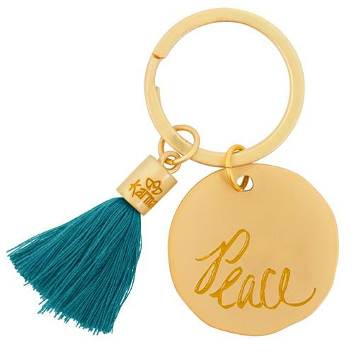 Step out in style with these cute gold disc tag keychains. These keychains feature brightly colored tassels and an aspirational or sentimental word embossed into the charm to add personality and fun to keys, backpack, handbag or personal belongings. One of multiple options available as shown. Makes a great gift topper or stuffer.