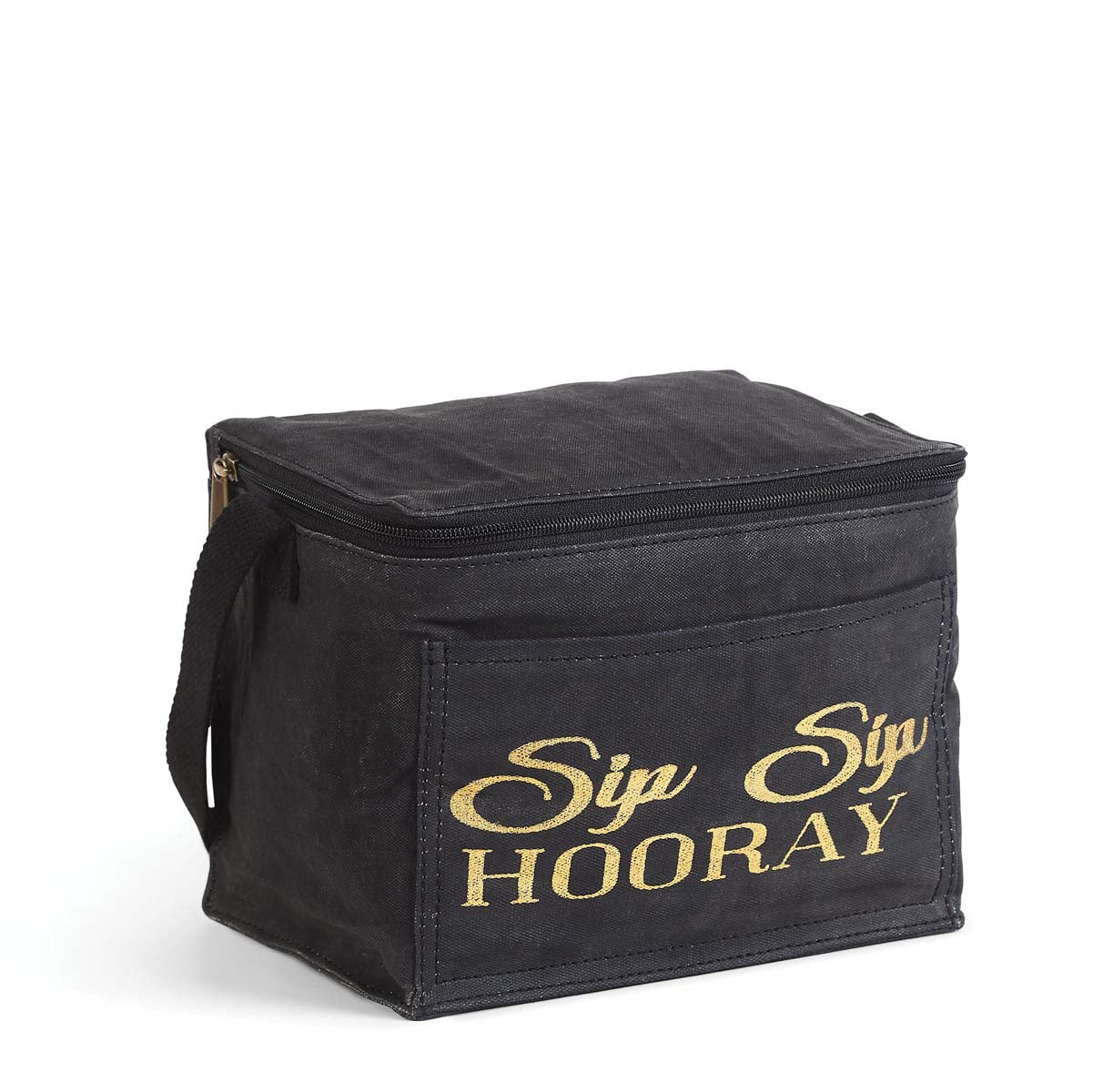 Six Pack Graphic Cooler "Sip sip Hooray!" Need a cold one between the ceremony and the reception? Carry your food and drinks in style with the Hooray cooler. Holds 6 pack of canned drinks