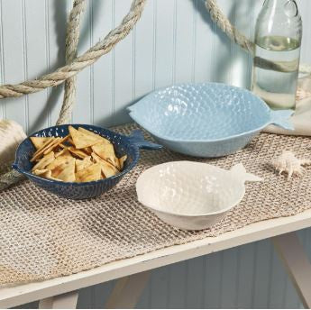 Fish Tidbit Dishes Include white, dark blue & light blue in small, medium & large. Set of 3