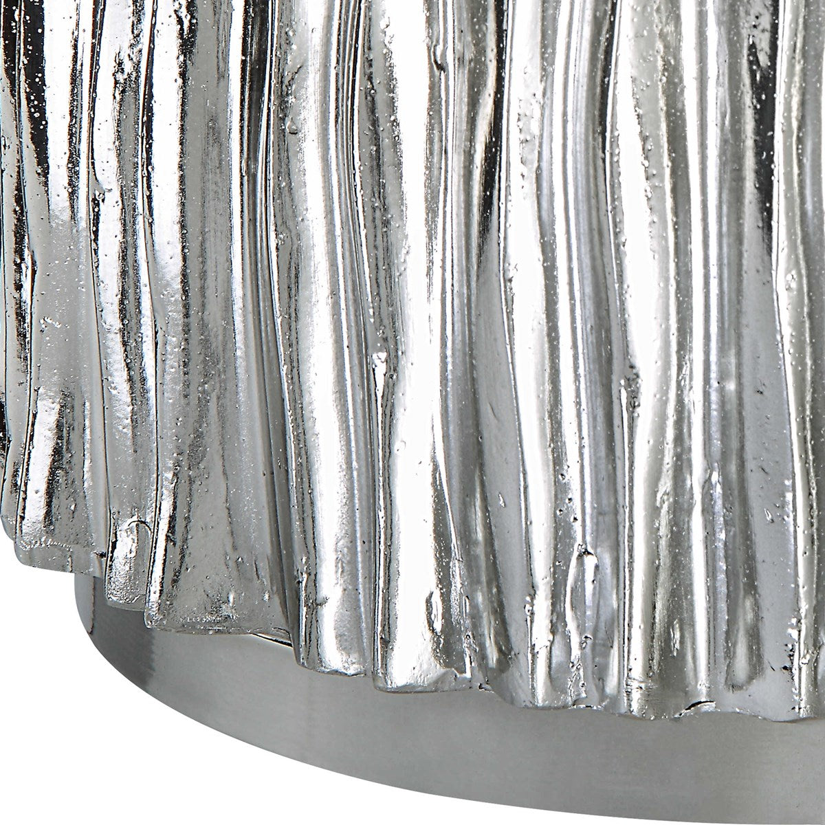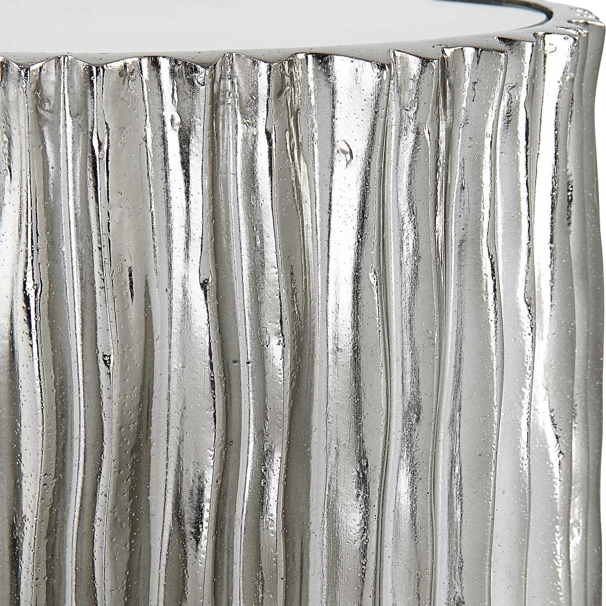 A waterfall texture make a dramatic statement in the petite Echo drink table. Finished in polished dark nickel with a mirrored top, this remarkable small-space accent is perfect for adding a touch of modern elegance. Big enough to hold a drink and a phone, this tiny table will fit perfectly within arms reach without getting in the way.