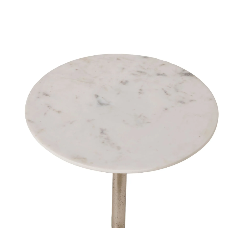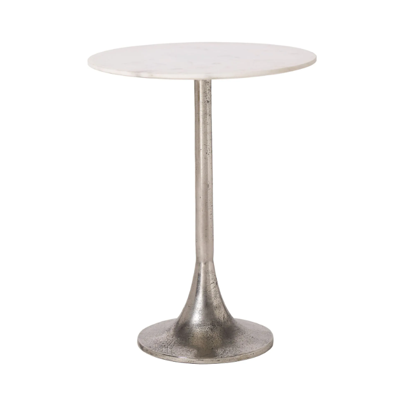 Inspired by a mid-century modern favorite, this stunning accent piece was designed with a tulip table base for timeless appeal. Its antique nickel-plated finish and smooth natural marble top make it the perfect choice to complement any contemporary or transitional setting. Place this side table next to a beloved chair or comfy sofa to elevate the space with functional style.