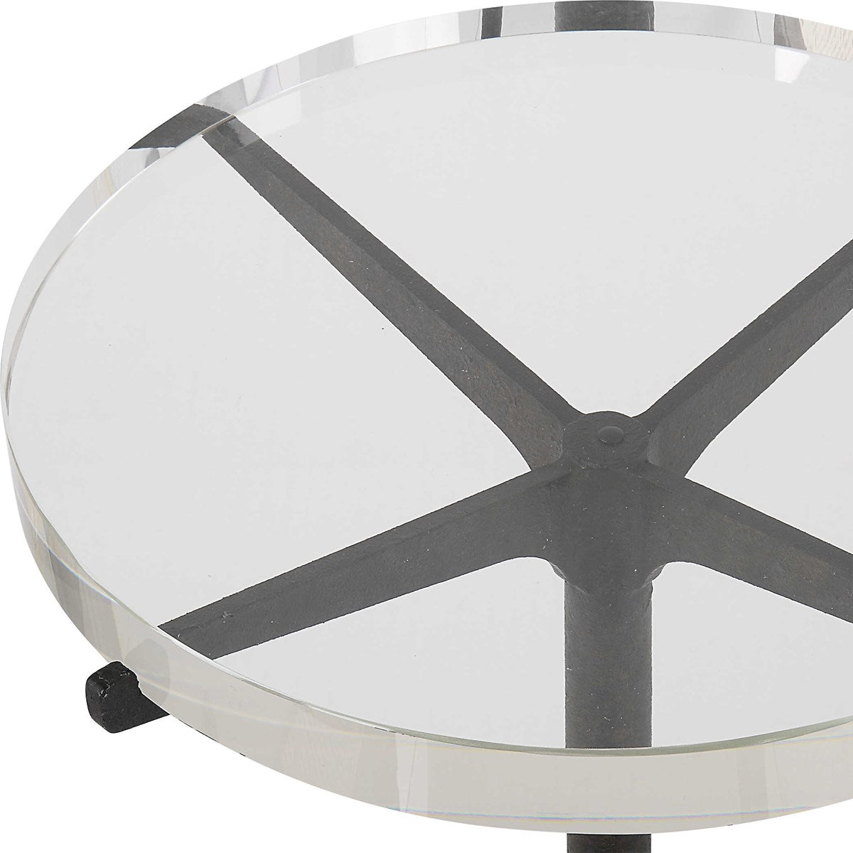 Inspired by classic industrial style, the Forge Accent Table is finished in a textured rustic brown base topped with a clear crystal top.  This minimalist style can be easily combined with rustic or modern farmhouse. The petite but sturdy construction is perfect for a drink and your phone or a remote. Great when you need a little space but don't have a lot of space.