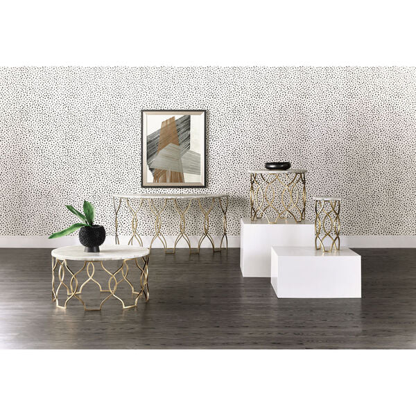 Add a sparkle of timeless Art Deco style to any living space with the Corrina Martini Table, blending a gold-leaf metal fretwork base with a White Onyx Parquet top for an airy and uplifting look. The compact 12x12 footprint makes this a versatile piece for any living space