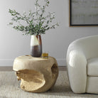 Formed by nature the Sola Side Table provides organic beauty and function in a natural bleached teak, serving as a decorative art piece while smoothed on top for functionality. Each piece is unique and will vary slightly in size, detail, grain and color due to the nature or organic material. Cracks and variations in grain are normal.