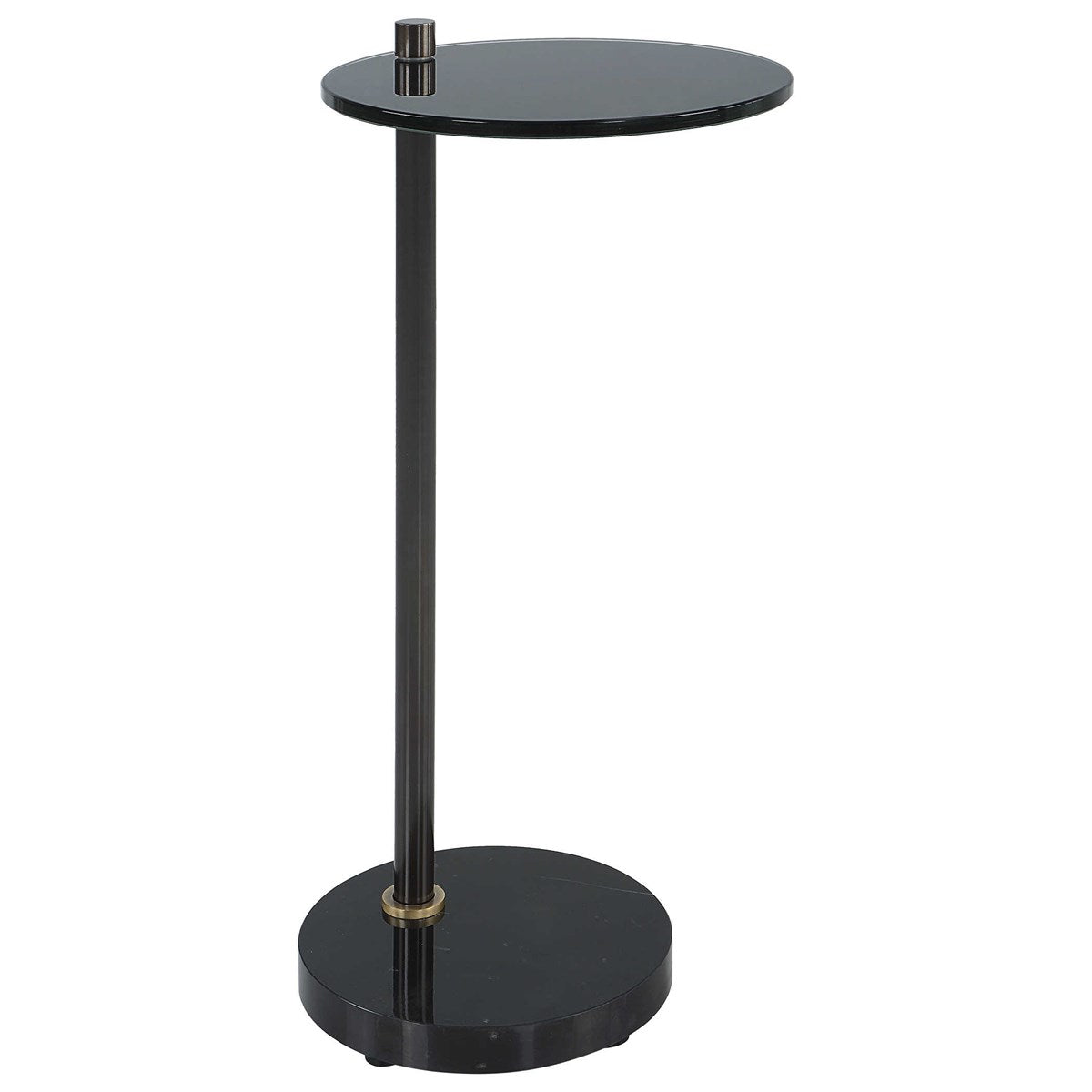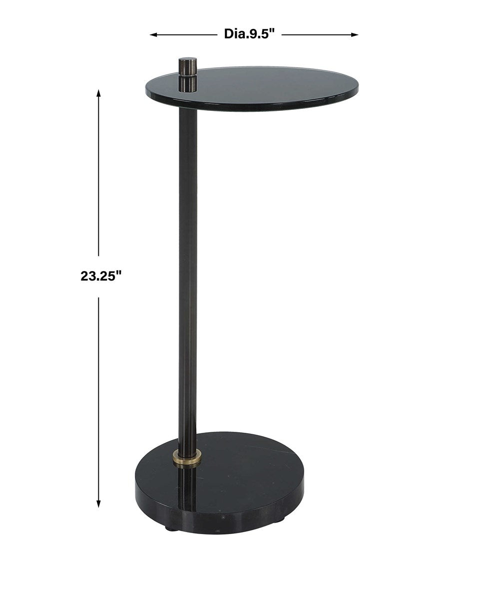 At your service, the Steward Drink Table is the perfect accompaniment to your favorite chair. Crafted with a solid black marble foot and black glass top with petite brushed brass accents, the Steward Side Table is just perfect for the first cupa or the 5 O'clock high-ball and small enough to fit neatly between chairs