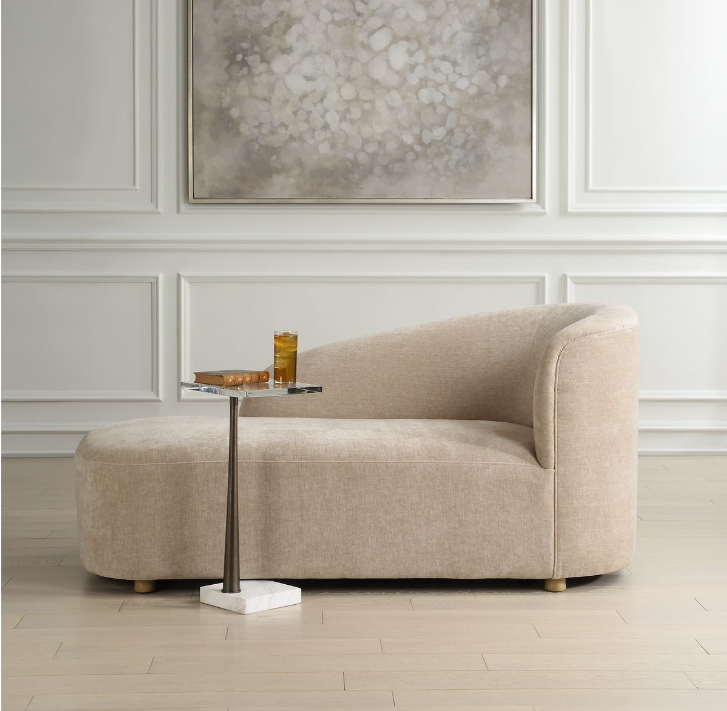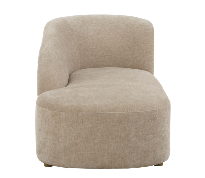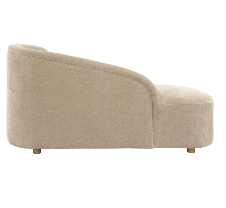 Unwind in style with the elegant Fae upholstered chaise lounge, featuring a sophisticated one-arm silhouette that invites you to curl up with your favorite book or simply relax in comfort. Wrapped in a flax-toned crosshatched velvet, this chaise offers a soft yet textured feel, adding depth and warmth to any space.