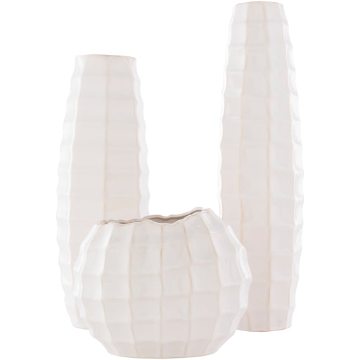 The Cirio Vases are a set of 3 transitional to modern geometric vessels that will add interest to your space indoor or out. Use as a group for the most impact or individually scattered throughout your design space.  Available in Blue or Cream as a Set of 3