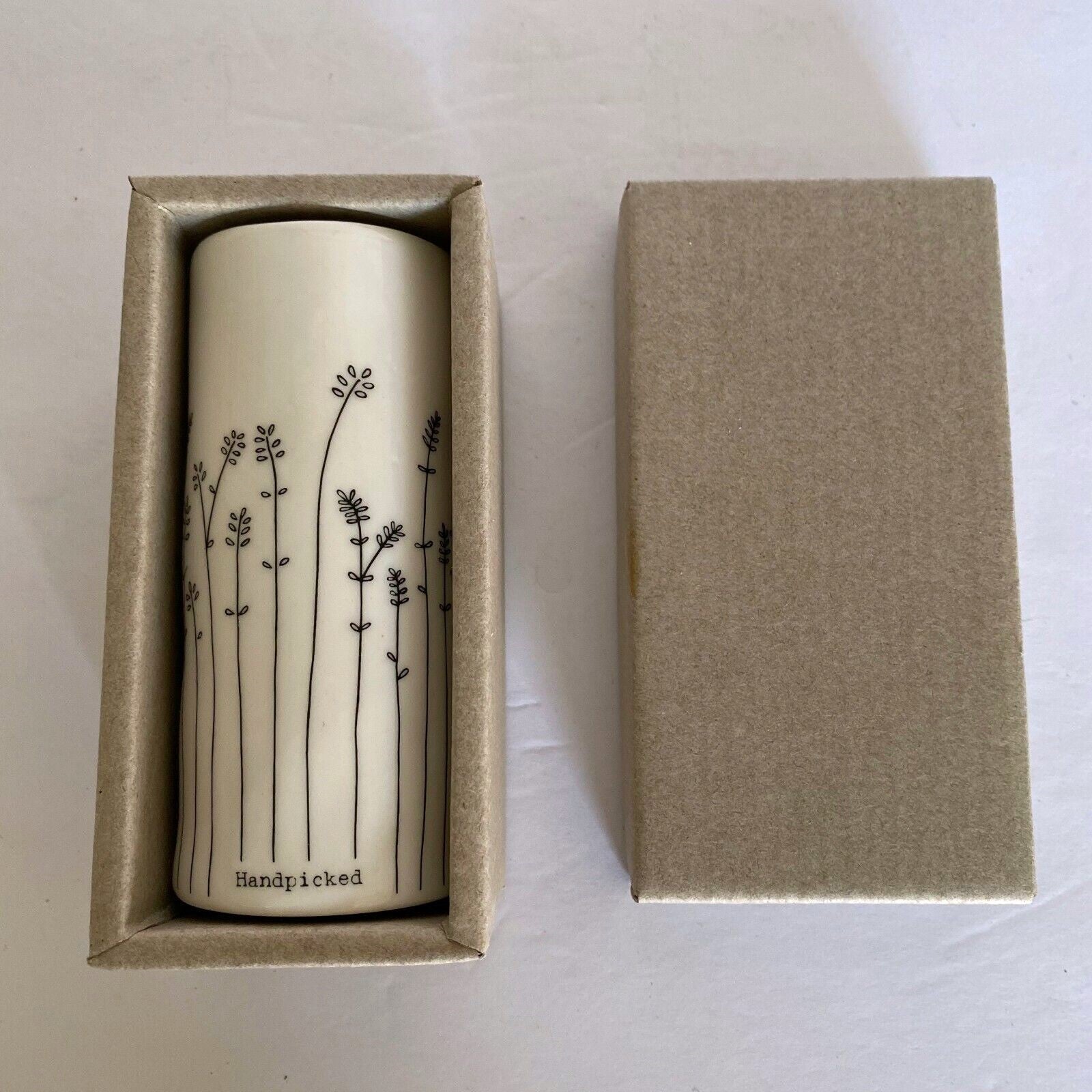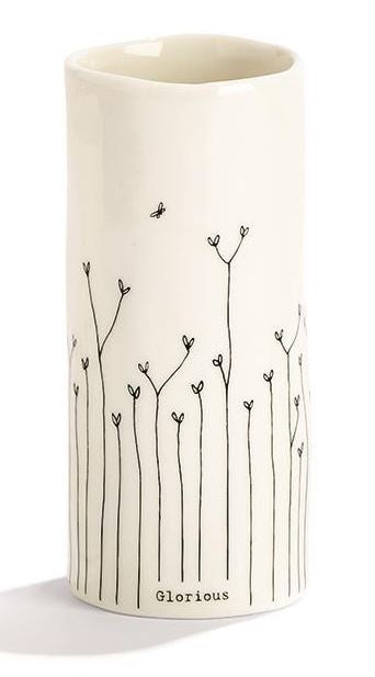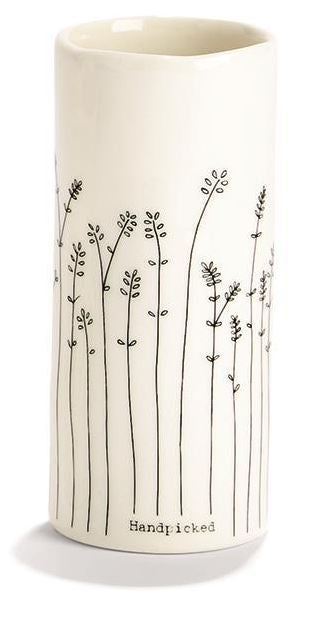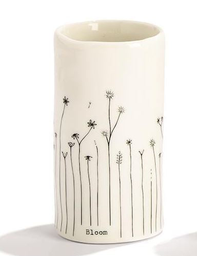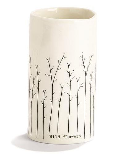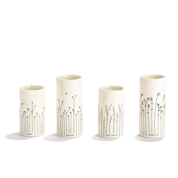 Petite organic shaped bud vases are uniquely decorated in ivory porcelain with a simple line drawing of 1 of 4 different wildflower illustrations and four unique titles. Each arrives in a Gift Box. Great for brushes, pens or blooms picked along a path. Sold individually in one of 2 sizes. Buy multiples and group together for a bigger impact.