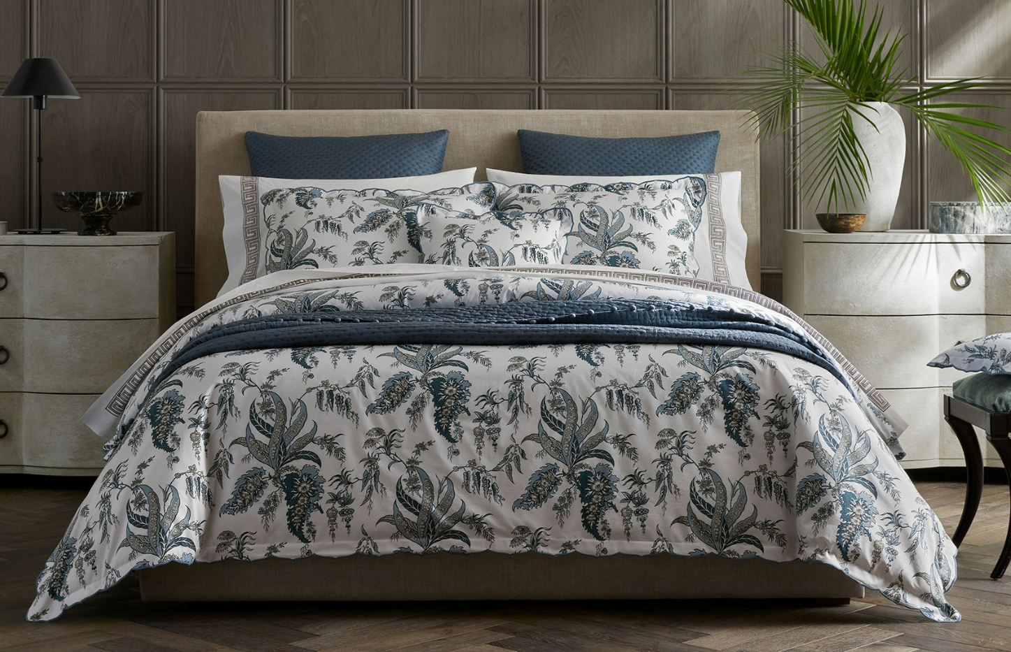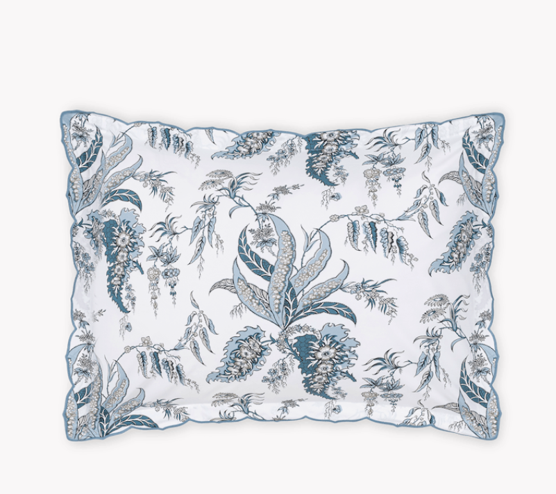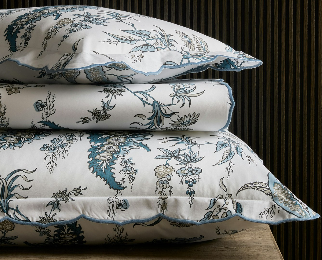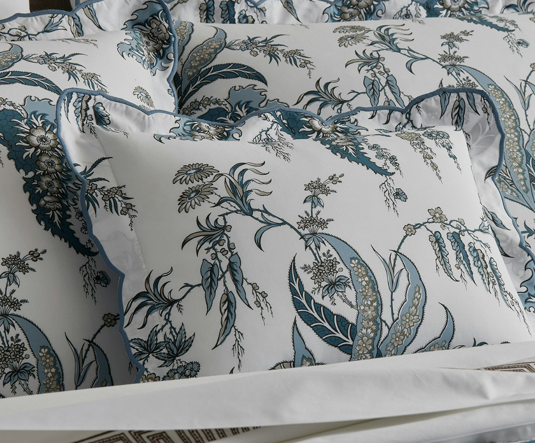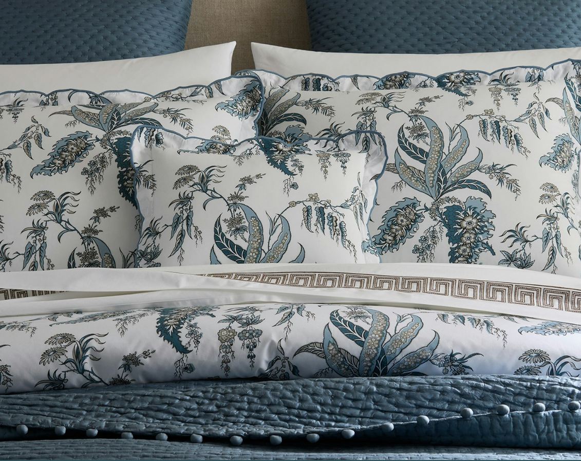 The free-spirited botanical print by Schumacher of the Apolline Duvet Cover & Shams marries the grace and wit of the British countryside with an air of classic sophistication. Featured on crisp, 500 thread count Luca percale, its muted tones and wild florals make a charming bedding statement.