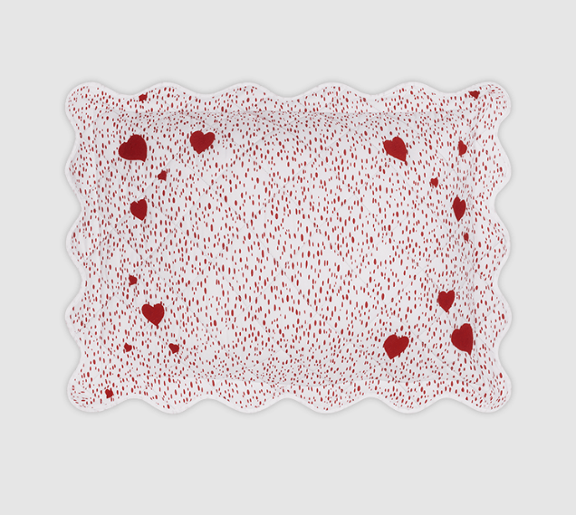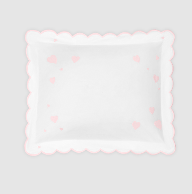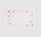 An exquisite keepsake and future heirloom, the mini pillow collection is designed to be personalized with names, dates and messages marking life's special moments. The Celine Hearts mini pillow is framed by a charming sprinkle of heart motifs, each embroidered on 500 thread count Luca Egyptian cotton percale in our Celine dot print and finished with a scalloped edge. We've included the insert for easy gifting. May be ordered without customization.
