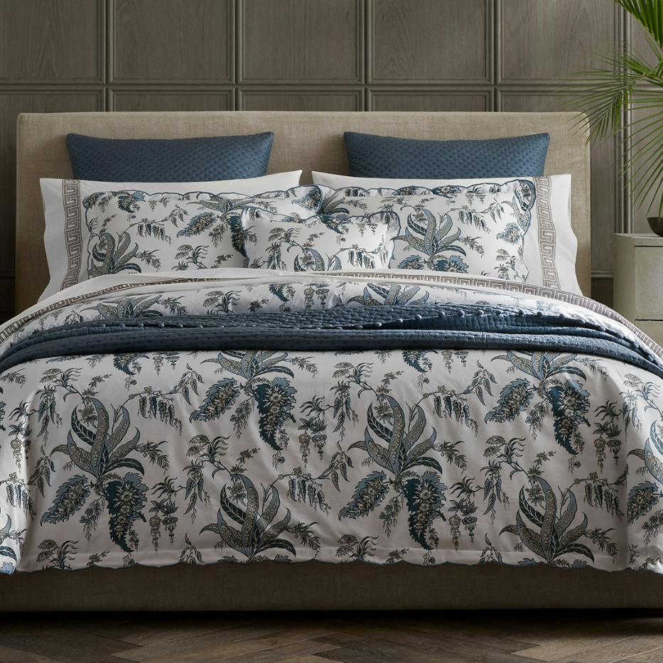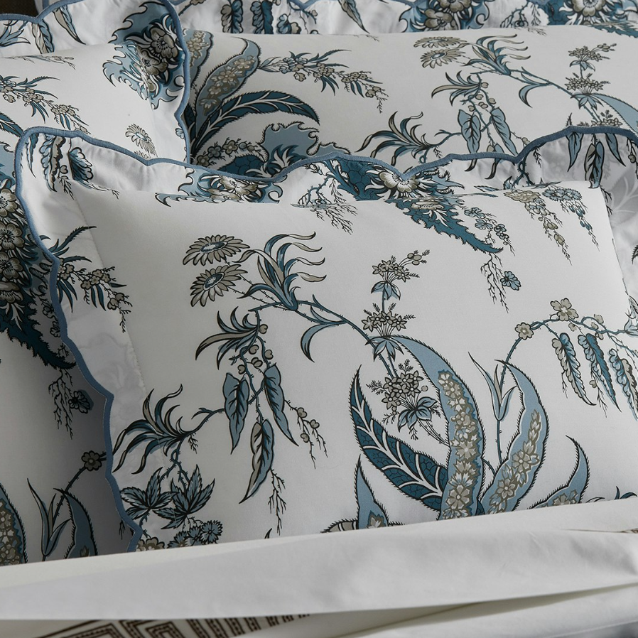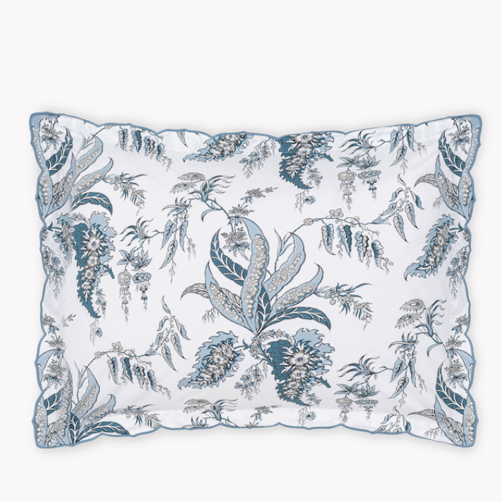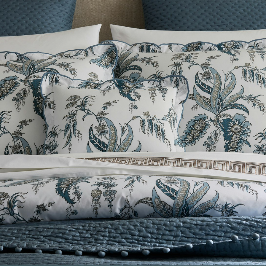 Margaret is precious in feel and robust in craft, featuring 100% hand-stitched silk quilting across the front and cotton voile on the back. It’s breathable, elegant and has a natural texture and versatility, whether tucked in formally or casually strewn across a bed. Quit features small round poms along edge. Sold individually.
