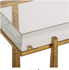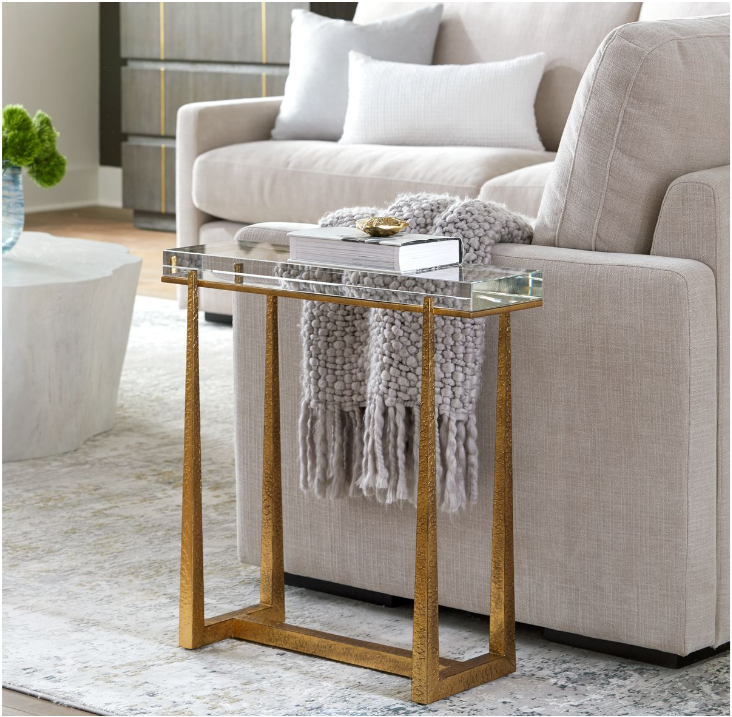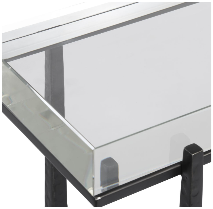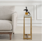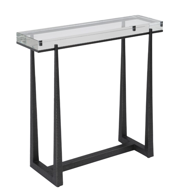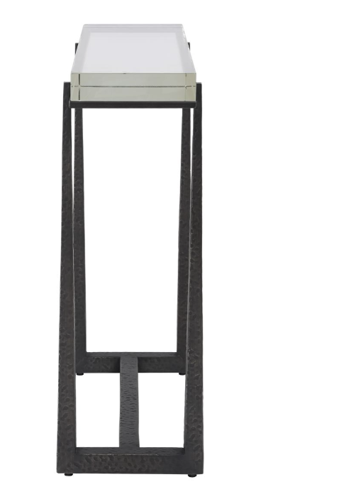 This elegant accent table adds a touch of luxury to any room. The iron legs perfectly support and accentuate the thick crystal top. Available in Gold or Dark Bronze finishes