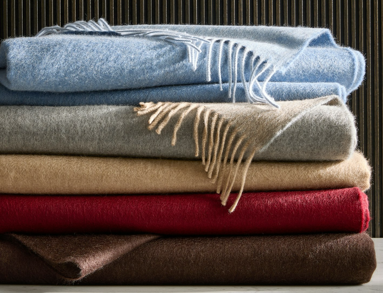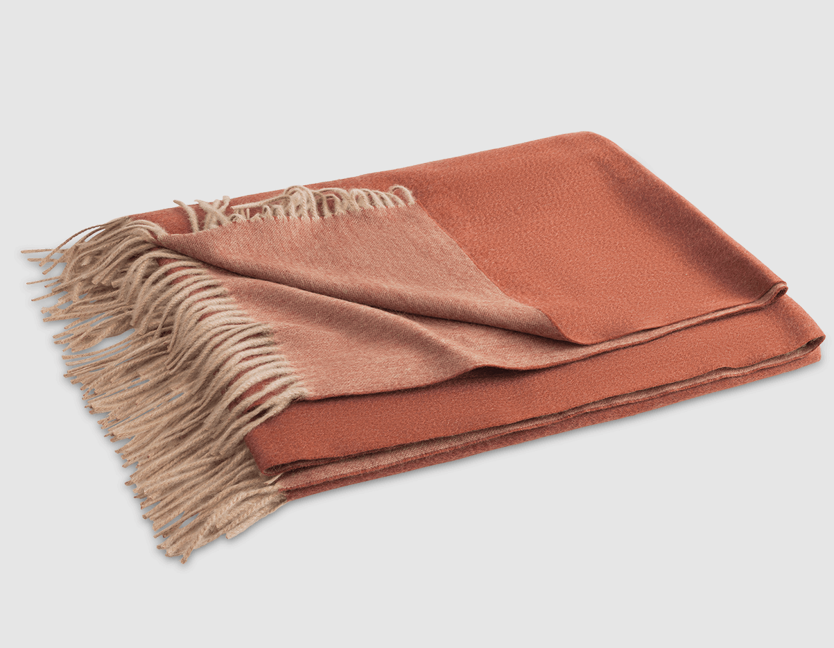 Woven from the finest Mongolian cashmere, our Paley Oversized Throw achieves its distinctive ripple effect with a gentle technique that uses traditional, natural brushes. The result is a reversible throw with rich, complementary colors that allows for ultimate versatility in any room.