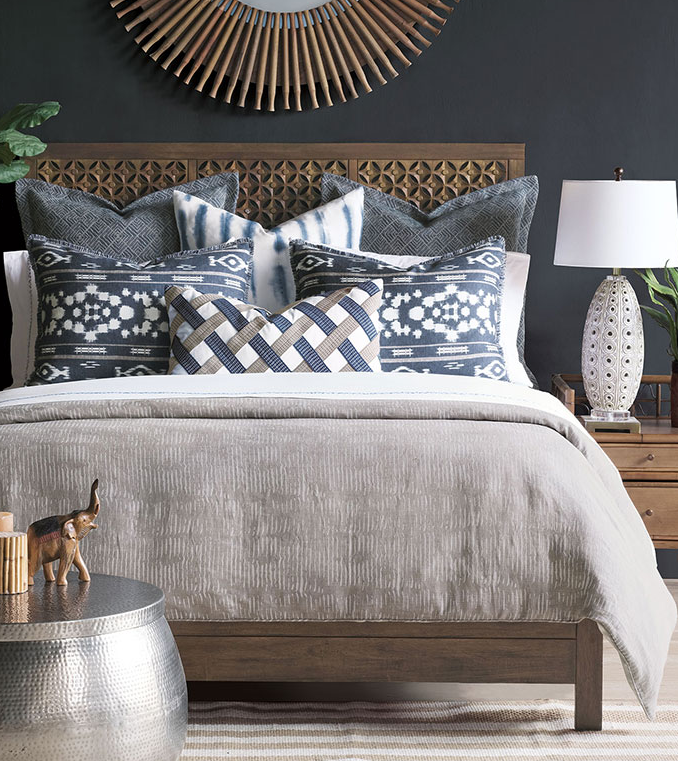 Get whisked away to calmer shores with stylish Saya. Influenced by the easy-going West Indies, this versatile collection features bold ikat-patterned shams and a taupe abstract-print duvet for beach-ready style. Let Saya's artfully hand-painted decorative pillows and criss-cross appliques take you to warm breezes on a secluded island paradise.
