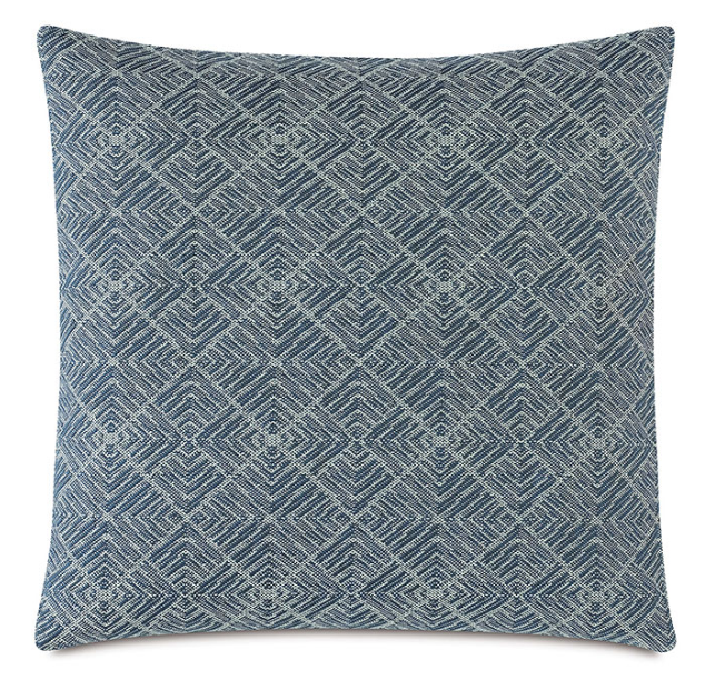 This blue pillow features a bold geometric diamond pattern and a clean knife-edge finish. It includes your choice of insert and a zipper closure for easy care. Perfect for adding modern style to any room.