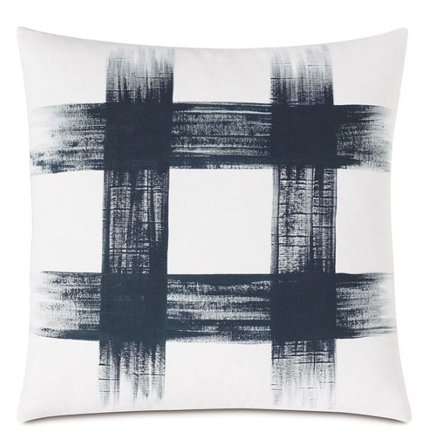 This blue decorative pillow showcases a unique hand-painted abstract check pattern, adding an artistic flair to any room. It includes your choice of pillow insert and features a zipper closure for easy cleaning. To keep it looking its best, gently vacuum or brush the painted areas and spot-clean the rest.