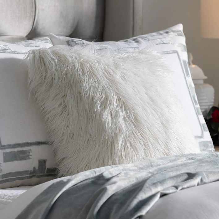 The Coco Square Pillow are made with White Faux Tibetan Lamb Fur. Pillow insert included.