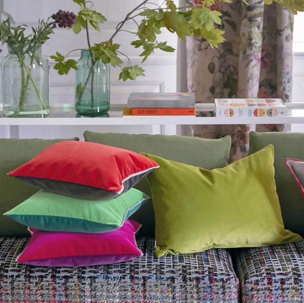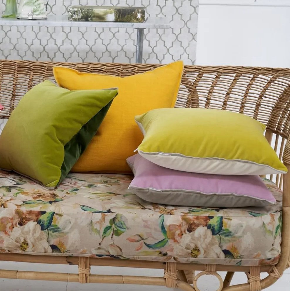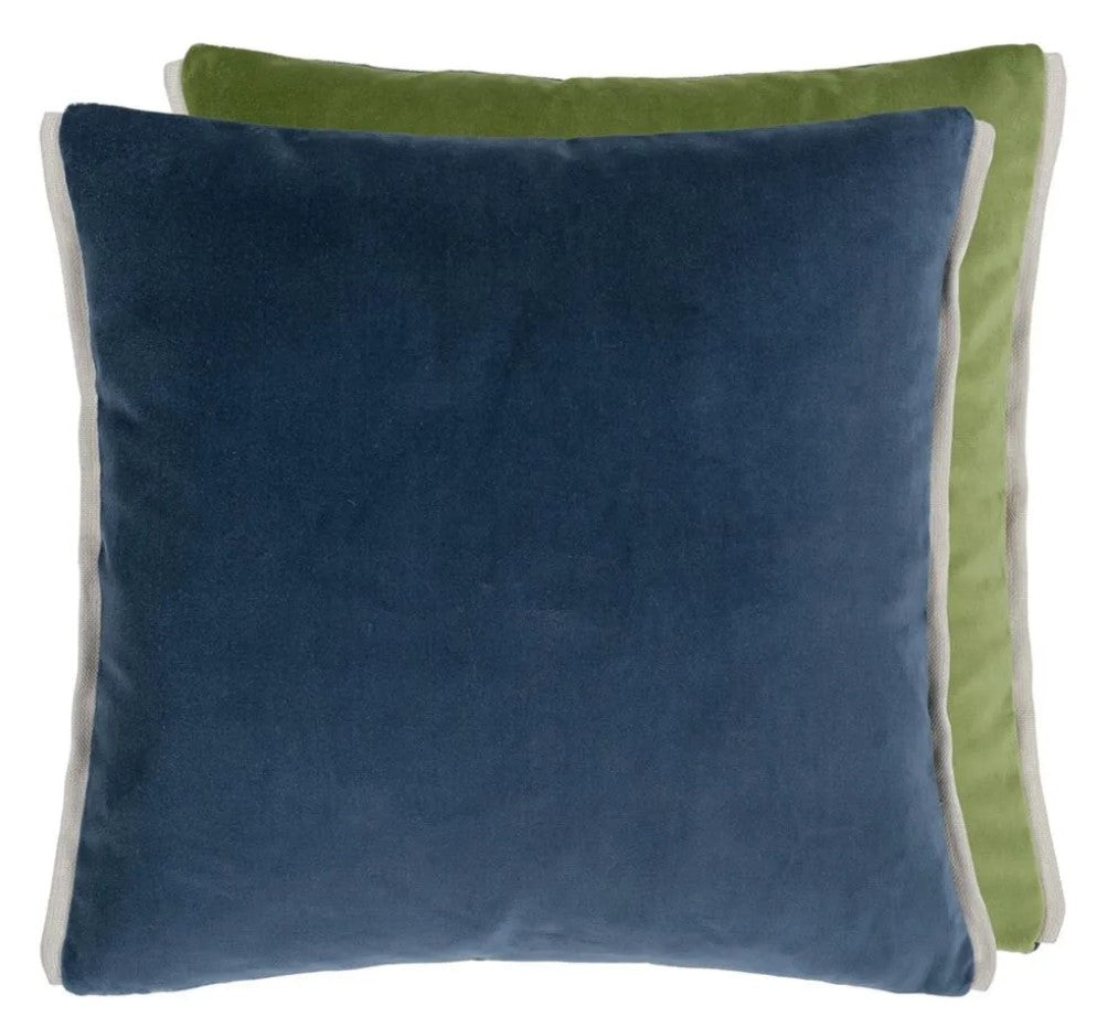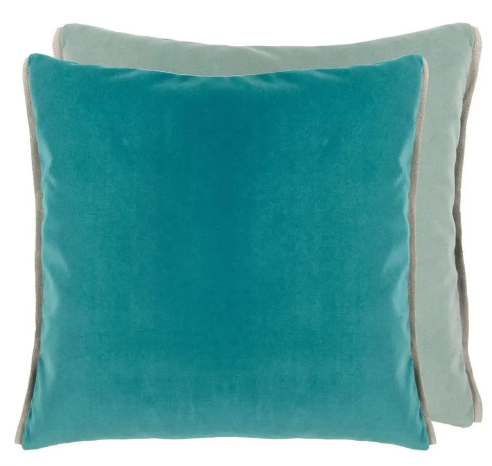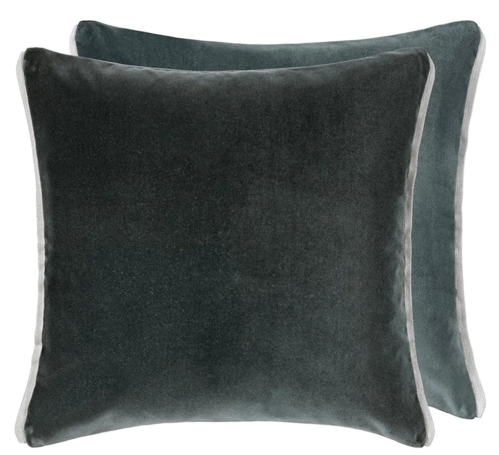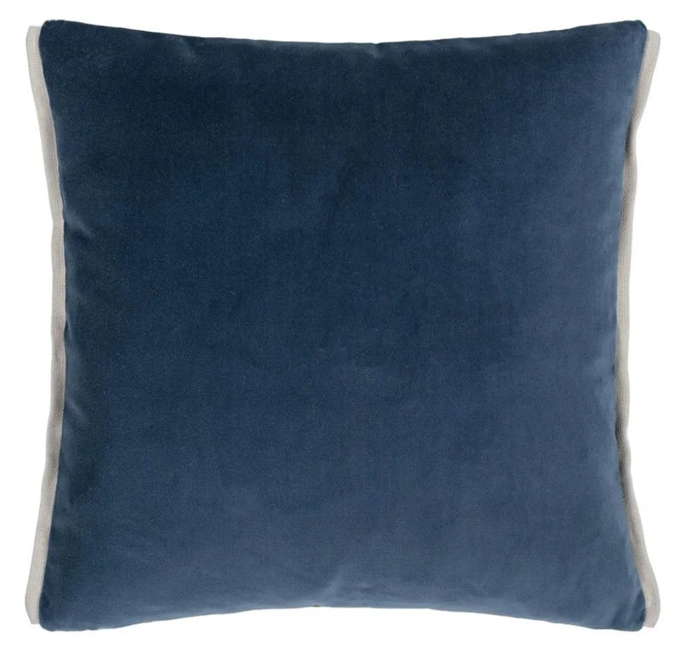 Cotton velvet is the feature of this luxurious 17inch square Varese Velvet pillow. Each pillow is available in multiple brilliant colors while others have a reverse to a contrasting color. All finished with a linen trim in natural. This elegant decorative pillow completes any interior scheme perfectly and is available in a huge selection of options.